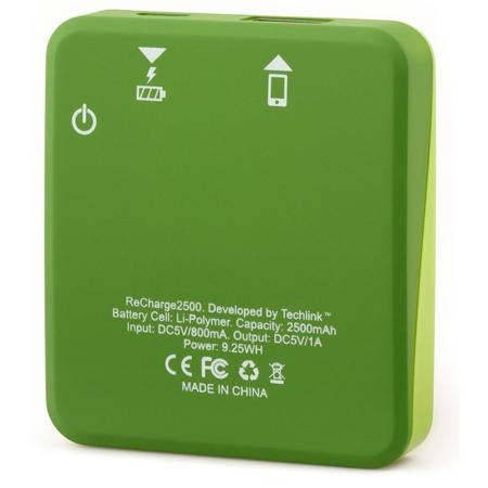 Battery power on the go, for smartphones and USB devices. The Recharge 2500 is a portable USB Power Bank with the latest Li-Polymer battery technology built-in, that will fully charge smartphones and many USB devices whether you have access to power or not. The Recharge 2500 is a pocket sized, yet easy to use device - just connect your USB charging cable to the USB port and press the Power button, charging will start instantly! The built-in 2500mAh Li-polymer battery will fully charge your device's battery, useful for when needing to make a call, watch films or playing games on your smartphone. Recharging the Recharge 2500 is easy. Plug it into any USB Powered Adapter, Car Charger or Computer terminal and the LEDs will instantly light up.