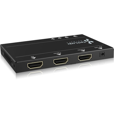 The TL-DA12-HD splits a single source to two destinations (typically displays or projectors). A built-in amplification circuit ensures performance for higher resolutions like 1080p and 4K at 30 and longer cable lengths. The TL-DA12-HD is an ultra-thin HDMI splitter with 2 simultaneous outputs. Compatible with HDMI & HDCP 1.4, the TL-DA12-HD can transmit 4K at 30, 1080p & 3D signal. Furthermore, this device supports intelligent EDID management which automatically adopts the resolution of the first detected display from output port 1 or 2.