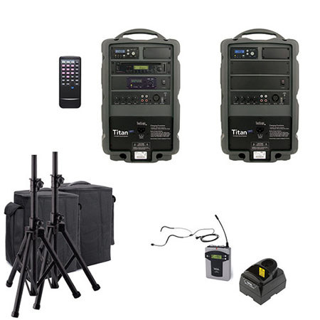 The TeachLogic PA-885B Titan Neo Wireless Bodypack Sound System with Bluetooth includes the PA-800 Portable Sound System, DR-800 Wireless Receiver, CD-800S CD-MP3 Player with Remote Control, BR-2AA Rechargeable "AA" NiMH Batteries, BRC-70 Battery Charger, SS-750 Speaker Stand, CC-750 Carrying Bag, BT-800 Bluetooth Receiver Module and UT-96BP Bodypack Transmitter with Choice of Microphone (C-Collar, L-Lapel, H-Headband or U-UltraLite).