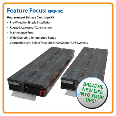 Tripp Lite's premium UPS replacement battery cartridges breathe new life into UPS systems suffering from expired or weak internal batteries. Each replacement battery cartridge is carefully screened and certified to meet or exceed originalspecifications, and ships ready for installation into your UPS system. Reusable packaging holds expired batteries for recycling center delivery. See Tripp Lite's UPS replacement battery web page to confirm compatibility and quantity required.
