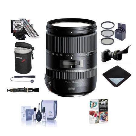 This all new 28-300mm lens delivers superb image quality in a remarkably compact, lightweight package. The advanced optical construction includes four LD (Low Dispersion) glass elements, three Molded-Glass Aspherical elements, one Hybrid Aspherical element, one XR (Extra Refractive Index) glass element, and one element of UXR (Ultra-Extra Refractive Index) glass. The full use of specialized glass elements contributes to making the lens as compact and lightweight as possible, while minimizing aberrations, resulting in superior image quality. This versatile high-power zoom is designed for use on both full-frame and APS-C DSLRs incorporates PZD (Piezo Drive) a standing-wave ultrasonic motor system optimized for swift, quiet AF and Tamron's acclaimed VC (Vibration Compensation) mechanism. Its upgraded cosmetic design with elegant tungsten silver brand ring, circular diaphragm for spectacular blur effects and moisture-resistant construction add to the appeal of this exceptional new All-in-One zoom.Compatible with Canon EF-mount full-frame and APS-C cameras