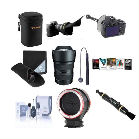 The lens incorporates a complex optical design, with 15 elements in 13 groups. Using 3 aspherical lenses including a large aspherical P-MO element and 3 all-glass molded Low-Dispersion (SD) elements, the lens effectively suppresses chromatic and spherical aberrations. The large front element provides super-low distortion and low light fall-off for straight lines and minimal exposure vignetting. Perfect for architectural, landscape, and astro photographers. x