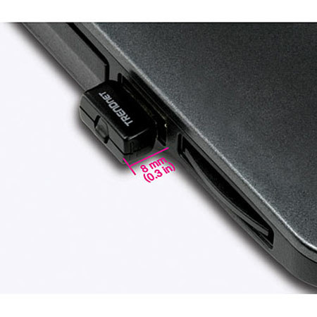 The TRENDnet N150 Micro Wireless USB Adapter quickly connects a laptop or desktop computer to a high speed wireless n network.