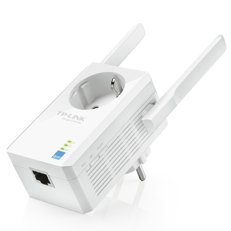 TP-Link's TL-WA860RE is designed to conveniently extend the coverage and improve the signal strength of an existing wireless network to eliminate "dead zones". With 300Mbps wireless N speeds, Range Extender button, miniature size and wall mounting design, extending a wireless network has never been easier. In addition, its extra outlet makes power available for other electrical devices. What's more, its Ethernet port allows the TL-WA860RE to act as a wireless adapter to turn a wired device into a wireless one.