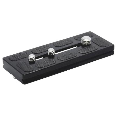 Has both 1/4 and 3/8 screws with flip up/down thumb screw levers, however mine only came with 2 screws instead of the 3 pictured. Both screws can come off, by passing through the 3/8 screw hole. Arcs-Swiss style plate fit perfectly on my Benro 3-way tripod head. Note that you may not be able to screw both screws into the base of a camera (eg Shen Hao 4x5 camera) if the base plate screw holes are too close together. Minus 1 star for missing a screw.