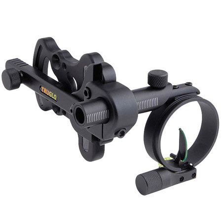 The TruGlo Pendulum Sight with Light (Adjustable Bracket, TFO Green 0.03" Diameter) is one of the most advanced treestand sight available. Once sighted in on the ground, the Pendulum automatically compensates for distances up to 35 yards out of a treestand. This sight can be locked in place for ground shooting and with the adjustable bracket the sight can be used as a single pin adjustable sight now. The TruGlo Pendulum sight is ultra-light, compact and extremely quiet. It is CNC-machined from solid aluminum. This model features adjustable bracket with Green TFO (Tritium Fiber Optic) pin, with its own glow, for visibility even when there's little or no light. The sight has extra-long, protected, wrapped fibers, circular field of view. Aperture has a 1.8" inner diameter. Other features include an adjustable level with two vertical bars. Level is illuminated by luminescent shooter's ring. This Pendulum Sight is adjustable for left and right handed shooters. Like all TruGlo sights, the large pin guard has a glow-in-the-dark ring for quick pin acquisition in low light.