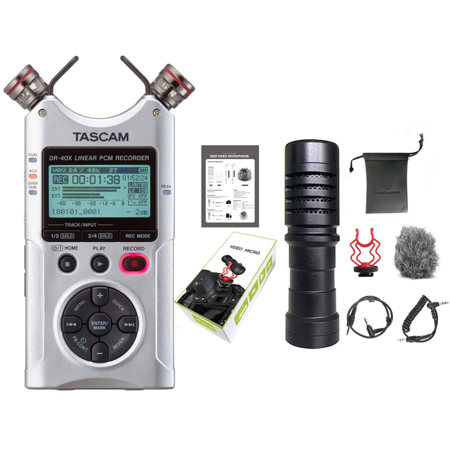 Tascam DR-40X Four-Track Digital Audio Recorder and USB Audio - With Music Trends Mini Shotgun Cardioid Microphone