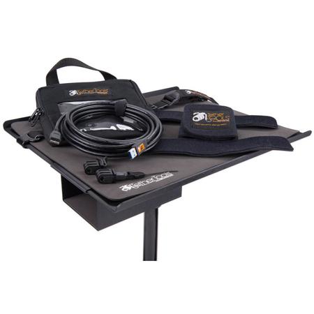 The Aero XDC (eXternal Drive Compartment) attaches underneath the Tether Table to hold external hard drives and free up workspace. The StrapMoore provides a convenient spot to secure essential items like power adapters, batteries, chargers, or phones during shoots.