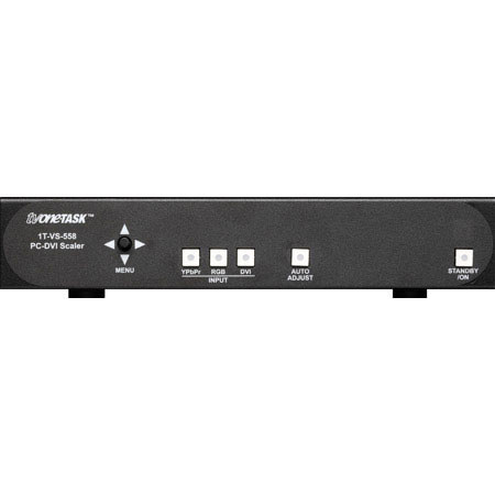 tvONE 1T-VS-558 PC/HD DVI Video Scaler is a high bandwidth, professional Cross Converter for Analog and DVI formats. The unit has separate Analog inputs and outputs via HD-15 and DVI-I connectors respectively. It accommodates resolutions up to WUXGA and 1080p and allows conversion between them as well as between digital and analog. The unit also accepts 480i or 576i YUV interlaced analog component video, such as from a DVD Player for up-conversion.