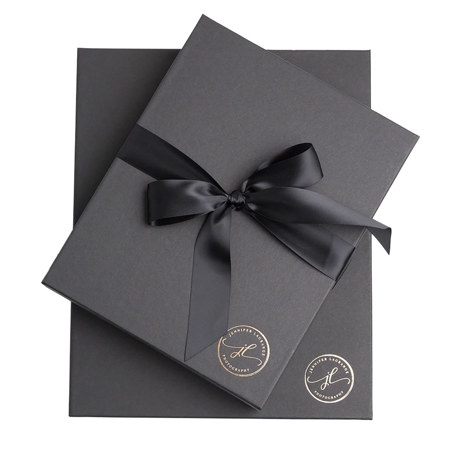Tyndell presentation boxes are manufactured in-house at our Livonia, Michigan facility. The 2" Presentation Box was designed to be an elegant, economical solution for photographers who want to deliver photo books, albums, portfolio mats, and loose prints in something that feels as polished as the work inside. The raised lid makes opening feel intentional - a small detail that goes a long way with clients.