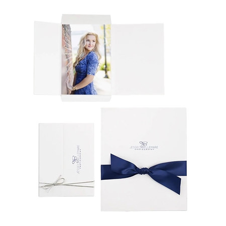 The Tyndell Photo Case is a high quality alternative to a portrait box. It takes up very little storage and is easy and inexpensive to ship to your clients. The Tyndell Photo Case can be used for a high end look with a single print delivery or multiple print delivery. Complete your photo packaging by imprinting them with your studio logo.