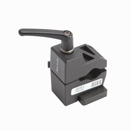 A wonderfully elegant solution to your control box banging against your stand. The only obvious downside is that you can’t use a V-mount battery at the same time. The clamp opens wide enough to be used on the largest diameter locations on your stand.