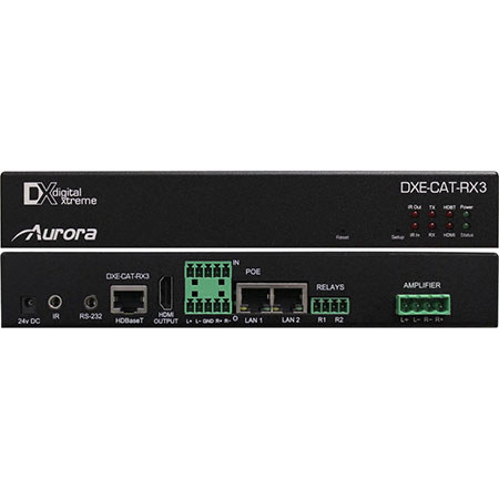 About Aurora Multimedia DXE-CAT-RX3 HDMI HDBaseT Extender with Relays, 600' Max Distance, 1080p 60 Hz, Bi-Directional RS-232 & IR & LAN, HDMI