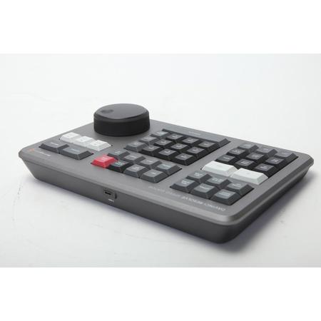The DaVinci Resolve Speed Editor features a machined metal search dial in a design that includes only the specific keys needed for editing. It also has Bluetooth with internal battery for connecting wirelessly, or you can connect via USB-C. That means it's more portable than a full sized keyboard.