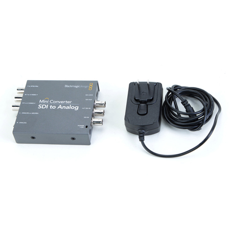 The Blackmagic Design Mini Converter SDI to Analog includes everything you need to convert from SDI to analog in HD/SD component, NTSC and PAL video, plus balanced AES/EBU and analog audio. It allows to easily connect equipment such as Betacam SP, VHS and analog video monitors to SDI based equipment.