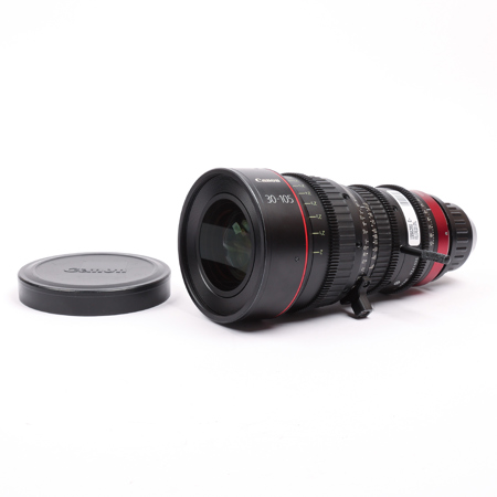 Have a high-end lens that meets industry standards with the Canon CN-E30-105mm T2.8 L S Telephoto Cinema Zoom Lens. This telephoto zoom cine lens is available with either a PF or Canon EF Mount lens and designed to work with 4K resolution cameras. The lens has a bright and consistent f/2.8 maximum aperture throughout its zoom range. This consistent aperture is also essential when shooting under low light conditions. It has a low minimum object distance of only 23.6", making it ideal for shooting close-ups and working in tight spaces and small environments. This low M.O.D. also makes it the go-to lens for multi-location productions and shoots. It also has an 11-blade aperture diaphragm for creating soft bokeh. Have an all-around telephoto zoom lens for your next film or broadcast production with the Canon CN-E30-105mm T2.8 L S Telephoto Cinema Zoom Lens.