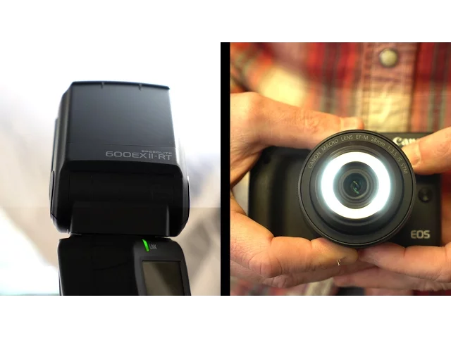 Offers a number of options for both wireless flash and multi-camera operation. When used with a compatible flash, or flash driver mounted on camera, the Speedlite 600EX II-RT can serve as a slave unit in an optical setup, at distances of up to 49.2 ft./15m when indoors and 32.8 ft./10m when outdoors. In addition to optical wireless flash, theSpeedlite 600EX II-RT is capable of radio transmitted wireless flash where the flash units need not be in visual proximity to one another and transmission distance is extended up to 98.4 ft./30m. Setups of up to 16 flash and camera units can be synchronized to take photographs simultaneously, making multi-angle and multi-directional photography setups simple. Additionally, remote shutter release can be achieved when the Speedlite 600EX II-RT is used as a slave unit with a compatible EOS digital SLR camera.