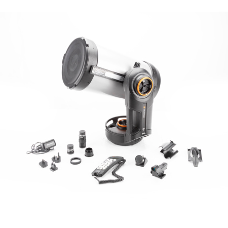 The 9.25-inch NeXStar Evolution is an excellent, affordable way to get started. It's the only fork-mounted telescope in its price range that offers brass worm gears, along with improved motors. NeXStar Evolution's tracking accuracy is so impressive, you can capture images of deep-sky objects like the Orion Nebula by simply attaching your DSLR camera. As you progress in the hobby of astroimaging, you can add Pro HD Wedge to achieve longer exposures for more detailed astrophotos. Of course, the Schmidt-Cassegrain optical system offers bright, sharp views with StarBright XLT optical coatings-a great choice for visual observers and budding astroimagers alike. NeXStar Evolution is equipped with 4 auxiliary ports 2 on top of the fork and 2 on the bottom. A classic NeXStar+ hand control is included, but is not necessary when using NeXStar Evolution with the mobile app. The telescope also includes a StarPointer finderscope, two 1.25" Plossl eyepieces, a 1.25" star diagonal and an AC adapter.