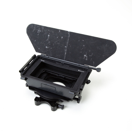 The Chrosziel 450-R2 MatteBox Kit is designed for Panasonic AG-HPX 250/160/130 camcorder. The kit includes a 450-R2 matte box with 16:9 mask, a 450-11 top French flag, a pivot mechanism for the use of side wings (sold separately), a 4 x 4" filter holder, a 4 x 5.65" filterholder, a bracket for 15mm rods, cover end plate with thread diameter of 114/110mm, adapter ring 110/85 mm and lightweight support 410-39.