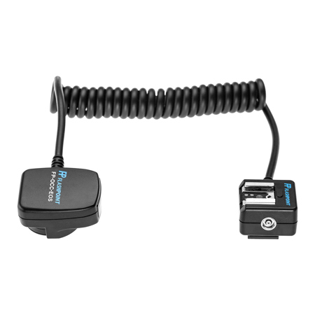The TTL cable flip locks firmly onto the camera hotshoe securely establishing contact to all the data points, which are transmitted via the durable 3 foot coiled cable. The end acts as an extended foot for the speedlight, and attaches to any stand, tripod, umbrella bracket, or other device with a standard 1/4"-20 screw or flash shoe mount. The extra length of the cable gives great flexibility when used on a bracket with a rotating or flip arm.