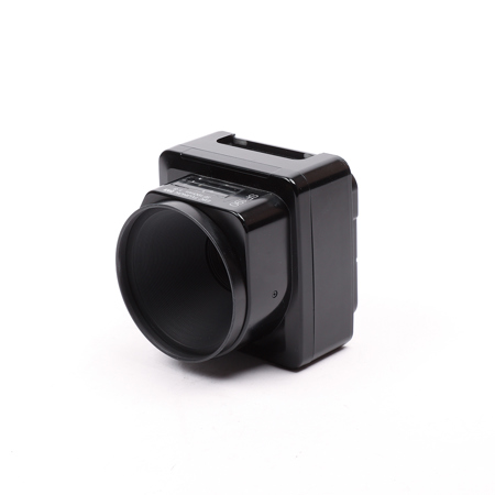 PC sync connection and a hotshoe on the camera body for electronic flash synchronization. Flash sync is possible at all shutter speeds.