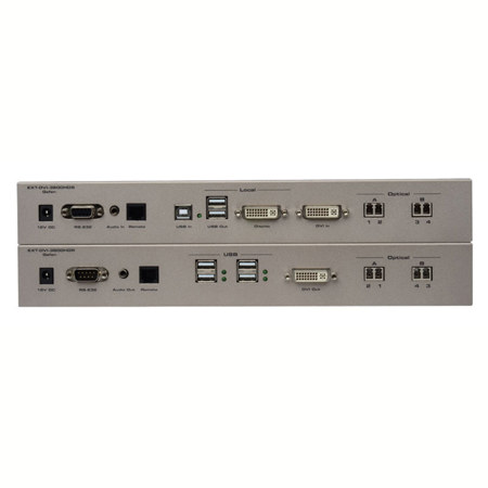 Extends DVI, USB2.0, RS-232 and analog audio up to 6600 feet (2000 meters) with single-mode fiber and up to 1650 feet (500 meters) with multi-mode fiber