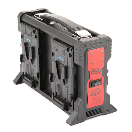 Incorporating an internal power supply, the charger is versatile and ready for global use, accepting a wide range of input voltages from 100 to 240 VAC. This makes it an excellent choice for international productions where power standards may vary.