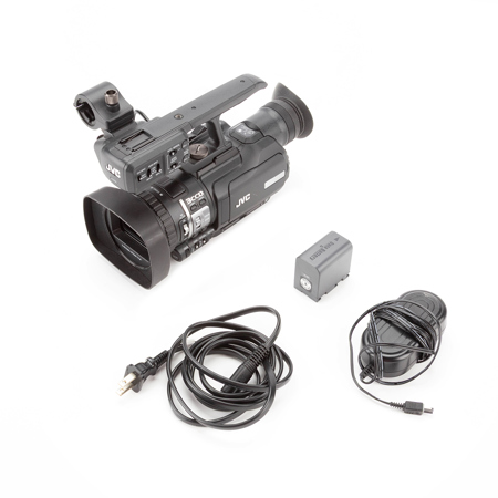 The GY-HM150U Compact Handheld 3-CCD Camcorder from JVC is an ultra-compact professional HD camcorder that records 35 Mb/s Long-GOP MPEG-2 to SDHC/SDXC cards. Offering an integrated 10x Fujinon zoom lens and three progressive CCD imagers, the camcorder debuts a Dynamic Digital Signal Processor from JVC that processes the full 1920 x 1080 signal, regardless of recording mode. Despite its tiny size, the HM150U slides right into most professional workflows in ways that far surpass the flexibility of AVCHD-recording models.