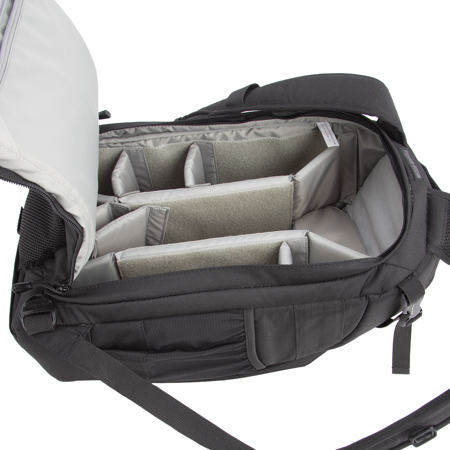 Adjustable dividers allow custom organization inside the roomy main compartment. Other features include; a mesh-covered, padded waistbelt, back pad and contoured straps for added comfort and wicking away moisture; a hideaway tripod holder to secure a tripod or monopod to backpack; built-in memory card pockets on inside panel; front storage panels and mesh pockets for storing additional gear; Hypalon SlipLock attachment loops for SlipLock compatible products; a built-in All Weather Cover; and silent zipper pulls.