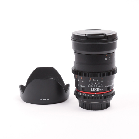 The Rokinon 35mm T1.5 Cine Lens for Canon EF with geared, manual focus and aperture control rings, is optimized for digital cinematography. The aperture ring has been "de-clicked" for smooth iris pulls and depth of field markings provide an essential aid to focus pullers. Optically, this lens is identical to the Rokinon 35mm f/1.4, which is known for its excellent sharpness and contrast.