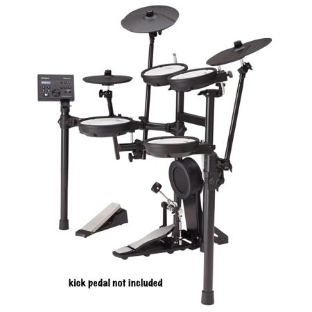While compact and perfect for home use, the TD-07KV V-Drums Electronic Drum Set by Roland brings the exceptional performance and playability of high-end V-Drums into an affordable package. This innovative drum set features Roland's original ultra-quiet, double-ply mesh heads across the snare and tom pads, large crash and ride pads, and a dedicated kick pad with a realistic pedal feel.