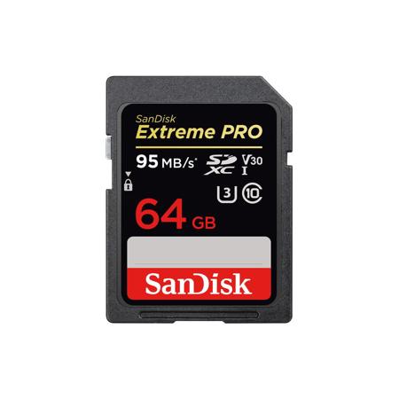 About SanDisk Extreme PRO 64GB UHS-I Class 10 U3 V30 SDXC Memory Card, Up to 95MB/s Read and Up to 90MB/s Write Speed