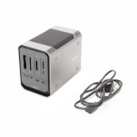Designed for customization, the PRO-DOCK 4 4-Bay Docking Station can easily attach to a DIT cart or other gear to support your production needs. Whether you're a professional or a tech enthusiast, this reliable docking station is designed to meet your high-speed data transfer and connectivity needs.