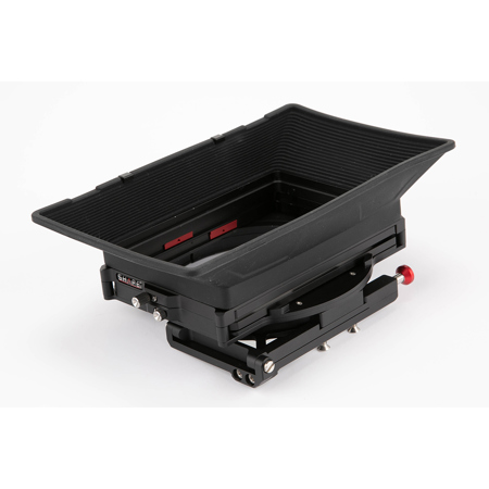 A silicone matte box mounted on a CNC aluminum main frame with an outer diameter of up to 124 mm. It provides a wide field of view for a variety of wide-angle lenses. Two 4 x5.6 filter trays (one rotary) with easy access handles that allow one-handed filter changes. 4 x4 filters can also be installed in the trays. The frame includes two stops at the bottom of the filter trays section to prevent the filters from falling through.