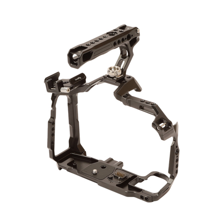 Features an ARRI locating hole, 1/4"-20 threaded holes, and cold shoe on the top, allowing for mount on ARRI top handle 2165 for handheld shooting. The cold shoe can attach Samsung T5 SSD mount 3272. The cage comes with shoulder strap holes on the top of each side for attaching a shoulder strap or other accessories. The left side has a NATO rail, 1/4"-20 threaded holes for mounting side handle 2270. The dedicated HDMI & USB-C cable clamp 3271 can be attached to ensure the stability of the hard disk and the stability of data transmission during shooting.