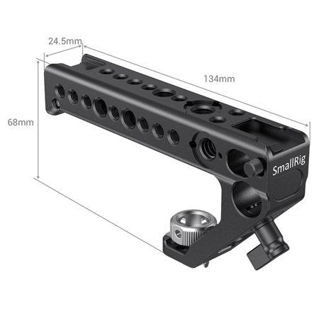SmallRig ARRI Locating Handle 2165B is designed to attach to camera or cage via standard ARRI 3/8"-16 screw and provide multiple accessory mounts. The handle secures via the thumbscrew and allows to use the built-in hex spanner for further security to ensure safety. Featuring multiple 1/4"-20, 3/8"-16 and ARRI 3/8"-16 threads for accessories such as Monitor Mount 2294 and 2348.