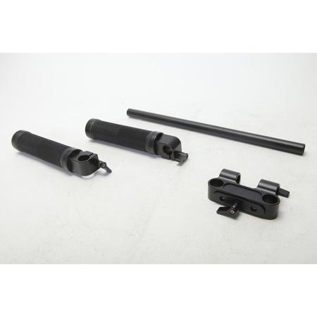 It includes a 30cm Rod, a 90mm Degree Railblock and 2 Rubber Rod Handles. It could attach 15mm shoulder rig system via the Railblock and could be used in run-and-gun operation. Each Handle is very flexible and can be moved independently, thus you can have one Handle further away from your body than the other Handle during operation.