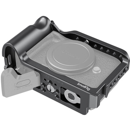 Designed with the content creator in mind, the cage includes cold shoe mounts on the top and left side, offering convenient attachment points for microphones, LED lights, and other essential accessories. Despite its robust structure, the cage maintains unfettered access to the camera's buttons, ports, and battery, ensuring that your workflow remains uninterrupted.