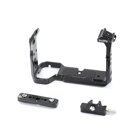 SmallRig Cage for Sony FX30 / FX3 4183B is designed to protect camera and provide accessory mounting points. The modular cage consists of a NATO rail and a U-shaped cage. The NATO rail is secured on the top via two 1/4"-20 screws and removed to allow installing the original XLR top handle; the U-shaped cage is fixed via 1/4"-20 screws on both sides and at the bottom to prevent twisting, with a cushion against scratches. At the battery door there is a hinge arm that fits camera curve for improved grip experience for little finger.