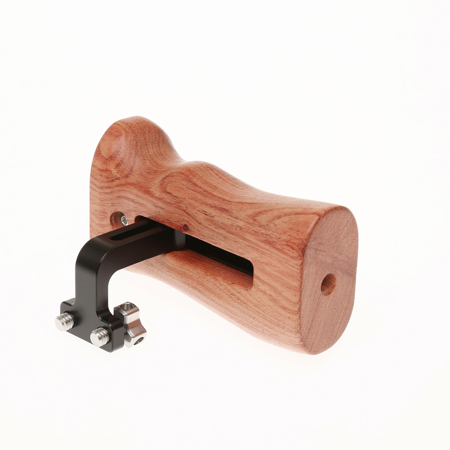 SmallRig Wooden Universal Side Handle 2093 is designed to provide a comfortable handheld shooting for cameramen. It is locked via two thumb screws and fits any cage featuring two 1/4"-20 threaded holes with 18mm distance on the side. The ergonomic side handle can be attached to left or right side by loosing the two screws on the side to change direction. The built-in hex spanner is designed to re-tighten the thumb screws and adjust the handle position quickly.