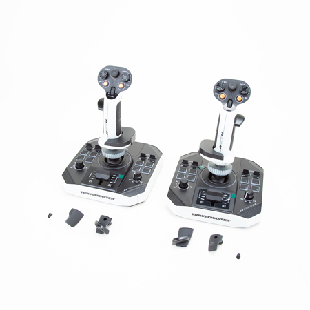 Combine Thrustmaster devices by attaching the removable grips of the Sol-R 2 HOSAS Space Sim Duo to AVA bases. The Sol-R bases are compatible with Thrustmaster's Viper and Hornet grips, as well as future grips. (sold separately)