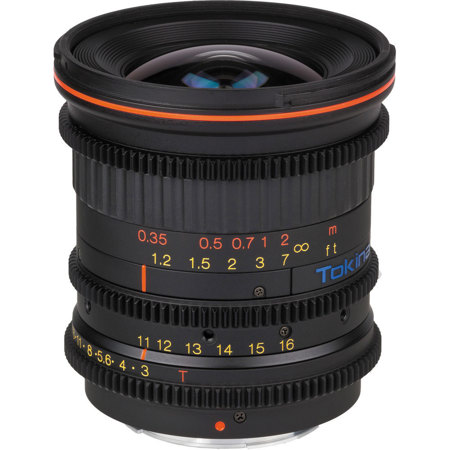 Proven ultra-wide angle optics have been converted to an 11-16 T3 cinema lens for use with APS-C, Super 35 and smaller image sensors