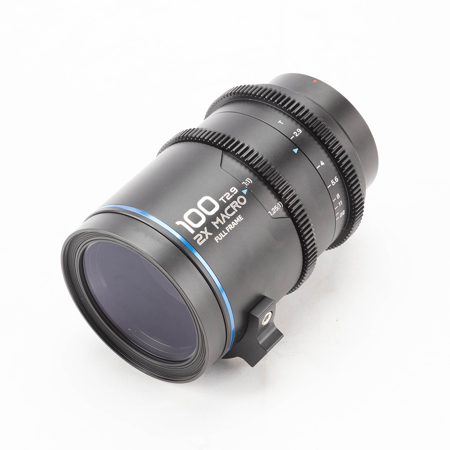 The 100mm macro cine lens features a 240-degree focus throw, allowing for more precise focus. The lens also includes dual scale (m/ft) on the body, catering to both imperial and metric users.