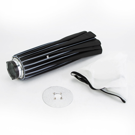 The Beauty Dish Switch opens quickly like an umbrella for easy setup and transport. It's constructed with ultra-durable components including an all-metal locking collar and 16 all-metal ribs for years of use in the field. This design minimizes weight, eliminates the need for separate support rods, and makes setup a breeze. Everything is simple, quick, and compact. After your shoot, the Beauty Dish breaks down instantly for storage in the included carry case.