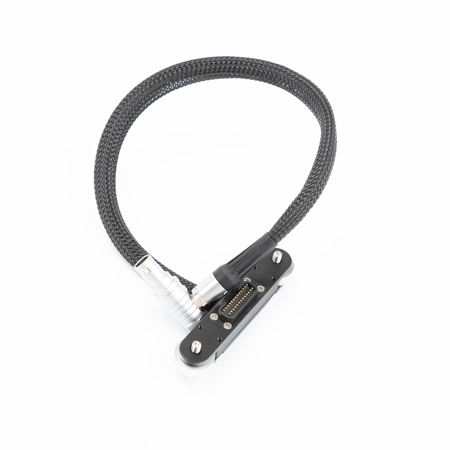 RED Male LEMO to Female Pogo LCD/EVF Cable (12") is a cable that allows the RED displays to be attached to products like the Easy Top (Weapon/Scarlet-W/Raven) and the RED LEMO Adapter A. The male LEMO connector attaches to any RED Standard 16pin LEMO and the female pogo connector has a slotted design that can be bolted to any two 1/4-20 screws holes up to 54mm apart, center to center. 1/4-20 threaded holes are also found on the bottom of the female pogo connector for attaching to WC Magic Arms. The braided, flexible cable makes positioning easy and is great for gimbal use.