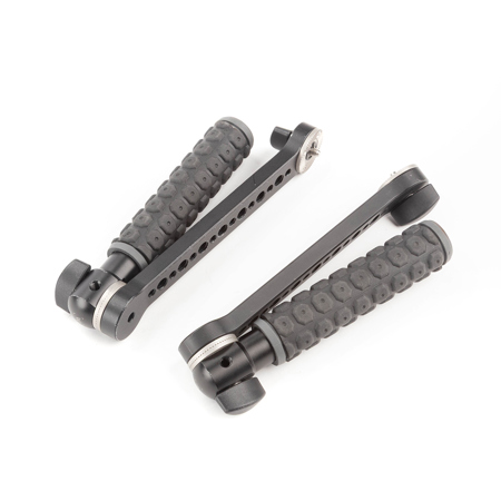 Wooden Camera Rosette Handle Kit (Rubber) features independent ratcheting handles utilizing ARRI standard rosettes. It includes Rosette Arms to put the handgrips in front of your body for easy camera control. This kit is perfect for quick, lightweight shoulder mounted configurations. The threaded holes on Arms and Handles allow for attachment of LCD monitors and other accessories.