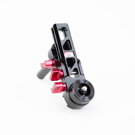 The Zacuto Axis Mini Mount is the most adjustable ENG style mount for rosette mounted EVFs, giving you full 360deg. motion with four adjustment points. Designed to attach to the top of your camera set up, it leaves plenty of room at the lens for focusing and will work with the widest of lenses. It can easily be adjusted with one hand while the rig is on your shoulder. The Axis Mini has extensive articulation for use with a variety of cameras, both shoulder mounted in a Next Generation Recoil or in tripod operating position. It is very small and quick to install and remove.