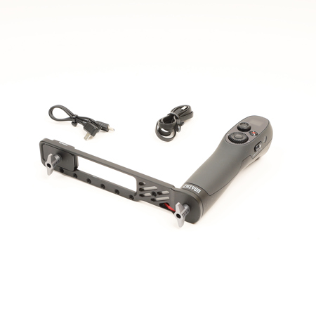 The Zhiyun TransMount Motion Sensor Remote Control enables you to view and control your camera while the stabilizer itself is out of reach or to split control between an operator and a camera assistant. This controller requires the use of a professional video monitor and the separately available TransMount transmitter and receiver. It includes an extension plate that connects to your monitor so that the controller acts as a handgrip. The controls on the remote control include a four-way directional joystick, a menu dial, and motion sensor, start/stop recording, reset, mode, live preview, menu, shutter, and power buttons.