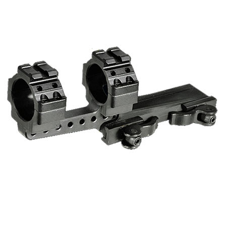 The UTG integral 30mm offset qd scope mount with 2 top slots 100mm base fits picatinny and weaver rails. The scope mount has bi-directional design to offer needed offset in diverse applications. The robust and user friendly ergonomic quick detach/lock lever is fully adjustable to fit on any weaver picatinny rail. The clever posi-lock crossbar design and spring tension controlled locking plate with steel insert gives most secured installation. It features tight tolerance control and repeatable positive locking for optimal re-zero. Also, high quality synthetic tape is applied on ring's internal surface for scope and mount protection. It comes with an adjustable quick detach lever lock system.