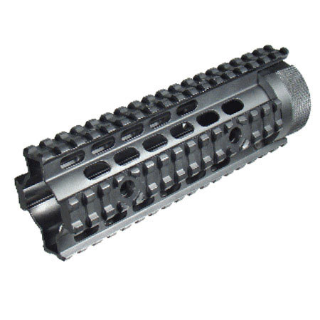 Constructed from robust aircraft-grade aluminum, this quad rail system is built to withstand the rigors of regular use. The hard anodized finish adds an extra layer of protection against corrosion and abrasion, ensuring that it maintains its integrity and reliability even in the most challenging environments.